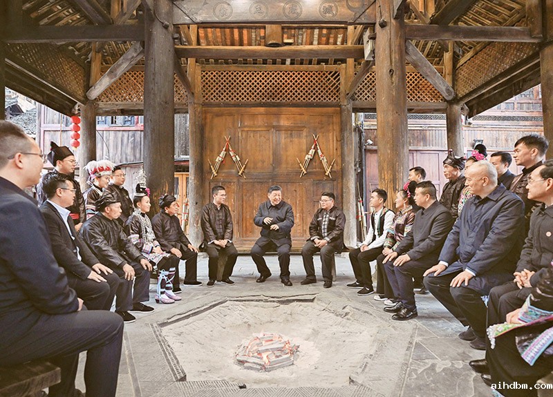 2025年3月17日至18日,中共中央总书记、国家主席、中央军委主席习近平在贵州考察。这是17日下午,习近平在黔东南州黎平县肇兴侗寨考察时,在信团鼓楼同村干部和村民代表围坐在火塘边,共话乡村全面振兴。 新华社记者 谢环驰/摄